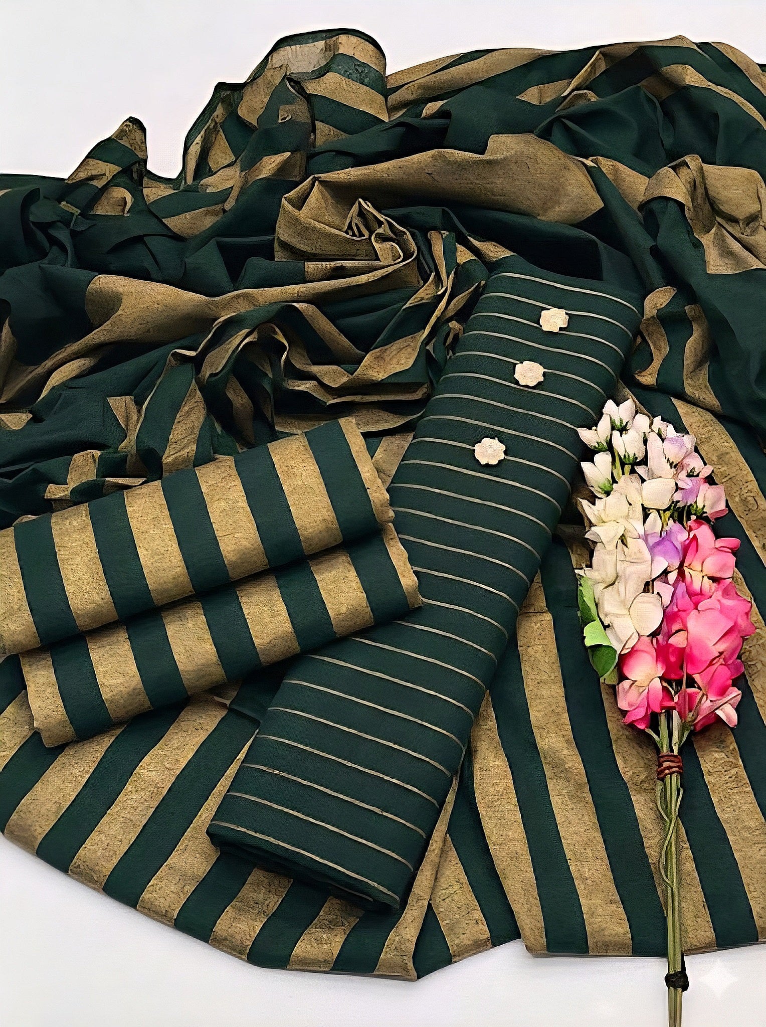 Introduce sophistication to your wardrobe with our latest Striped Collection. Designed for the modern woman who values both comfort and style, this 3-piece unstitched suit features a premium fabric texture with an elegant gold-beige striped pattern that looks effortless yet chic.