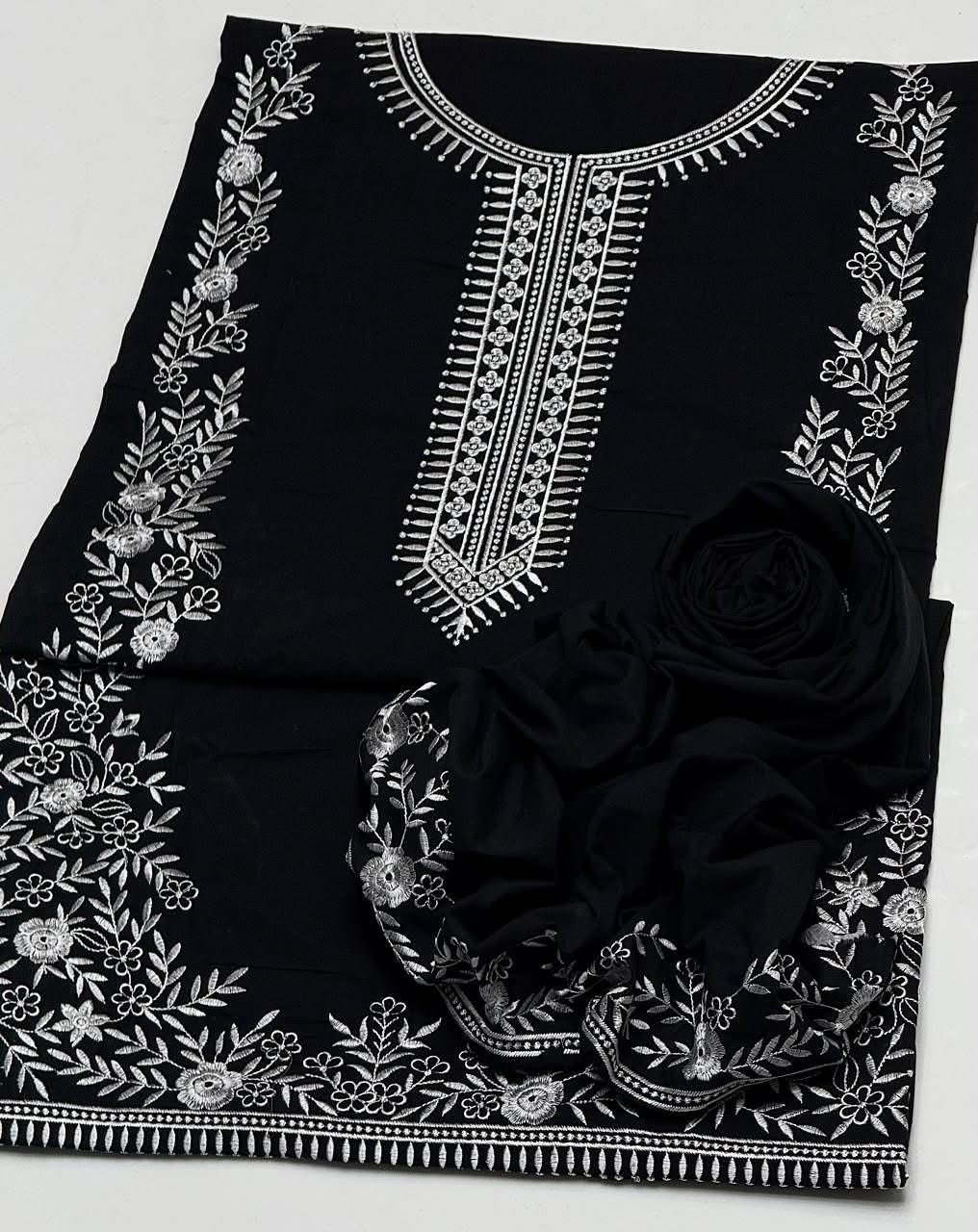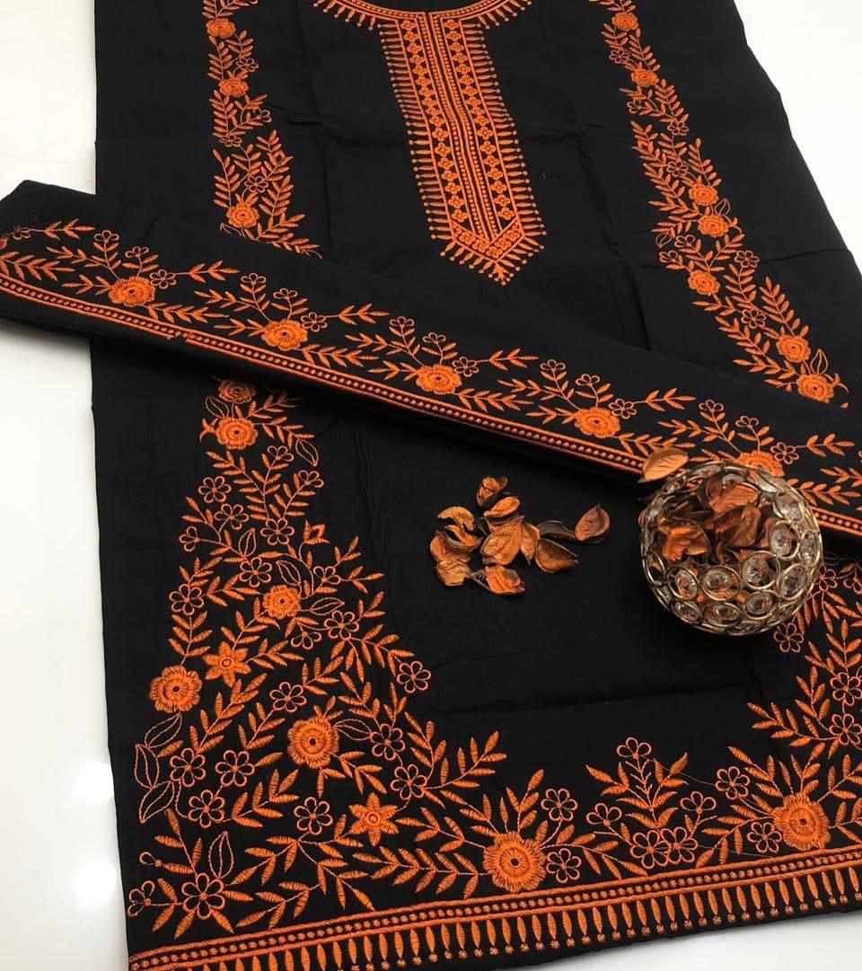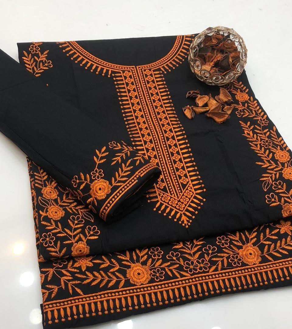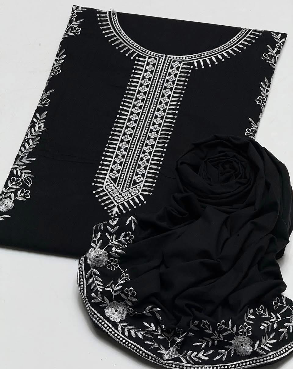 Shirt: Premium winter cotton with heavy embroidery detailing, beautifully adorned with stylish tassels for a graceful touch.