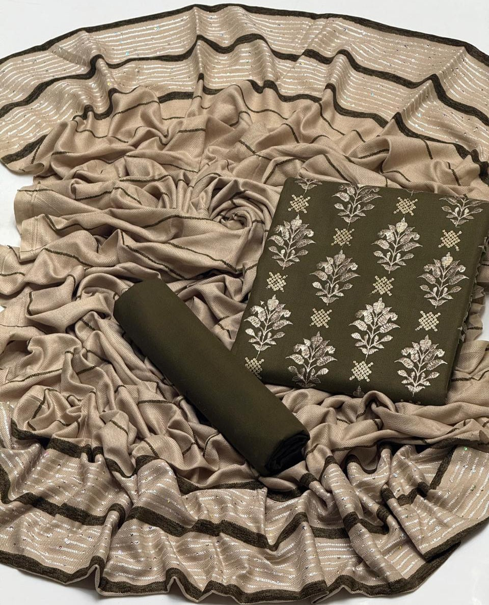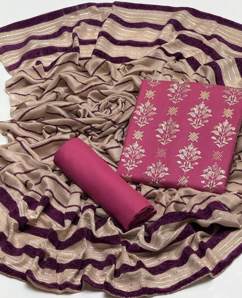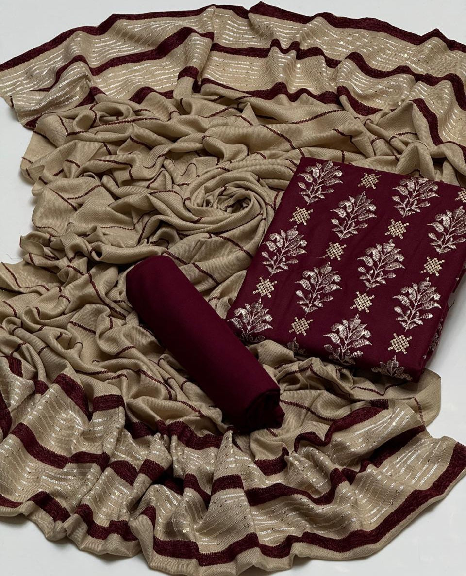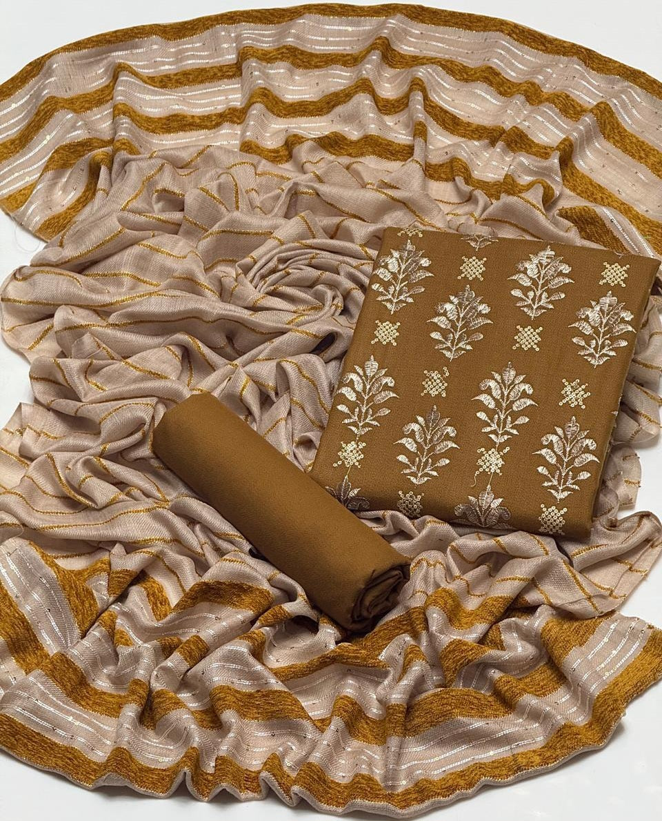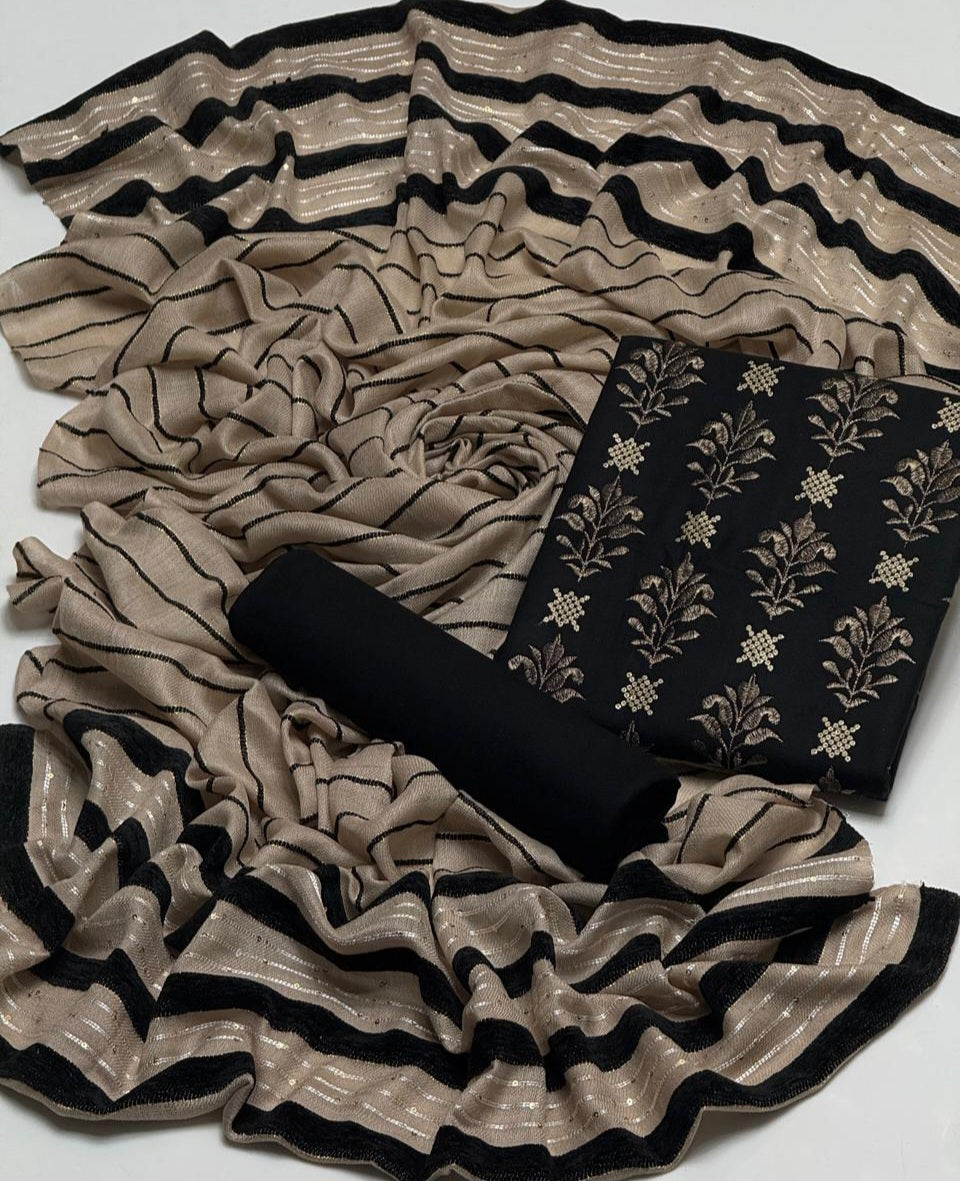 NEW WINTER COLLECTION 2K25Embroidery sequence work Dhanak Shirt & Trouser fine quality stuff Dhanak Along With Self Marina Velvet Border Lining Shawl 3Pcs Dress 👗