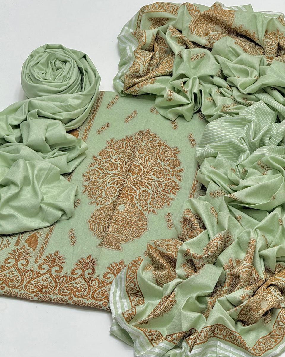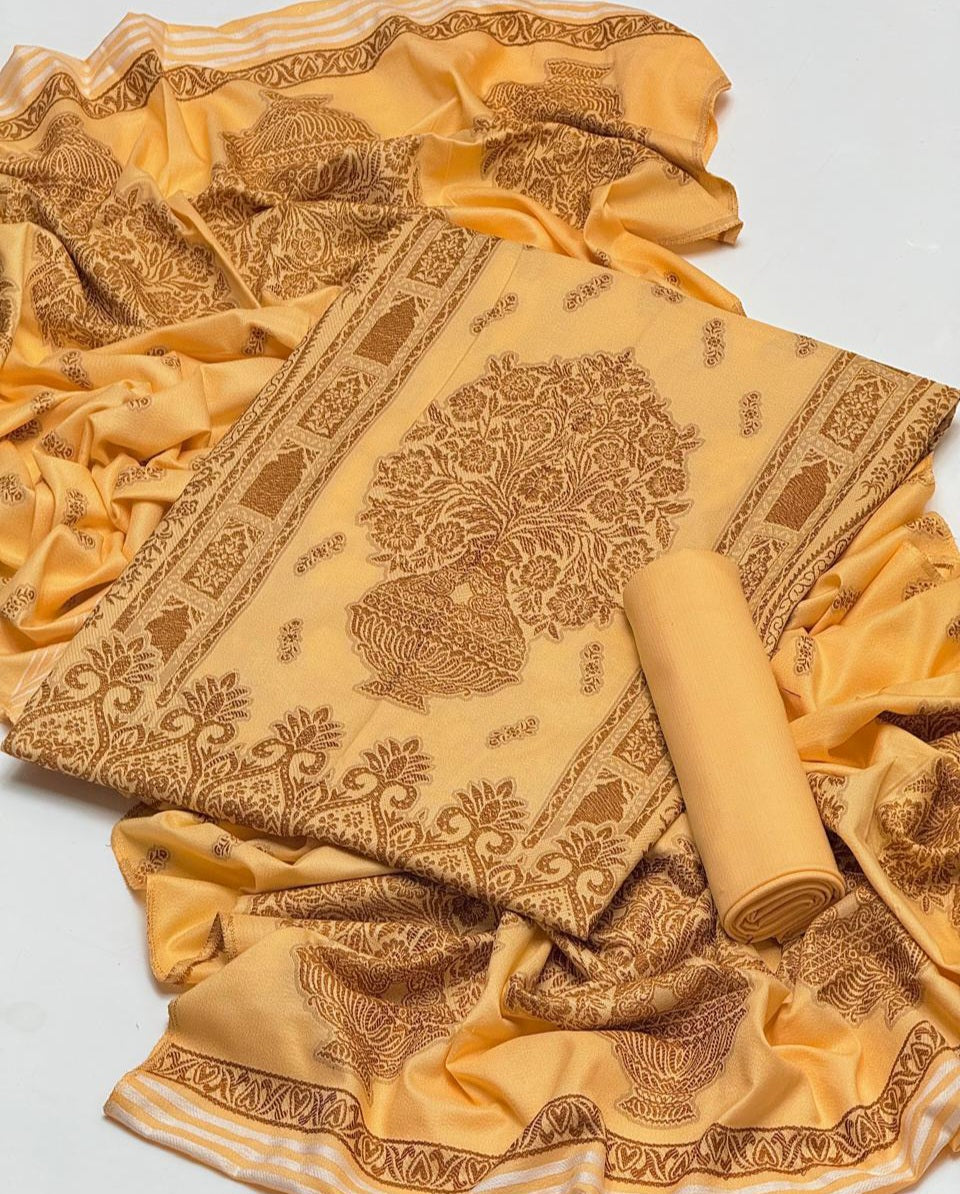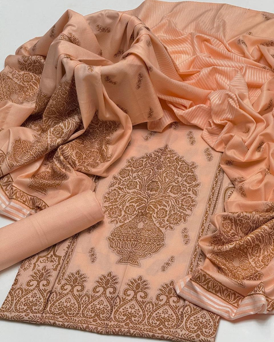 New Winter Collection Dhanak Marina Jaycard Work Shirt With Separate Sleeves.....Jaycard Work Dupatta Plain Dhanak Trouser3Pcs Dress