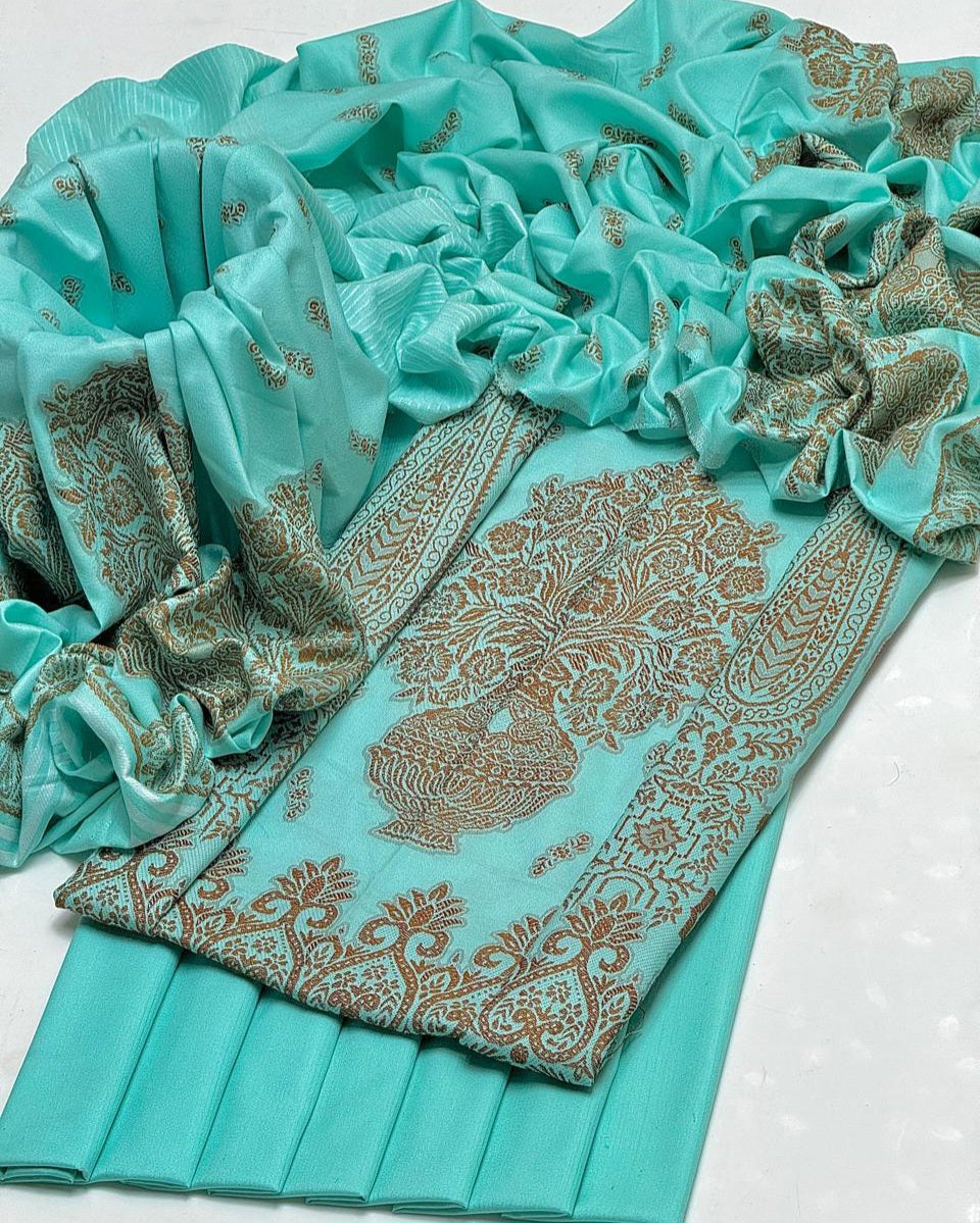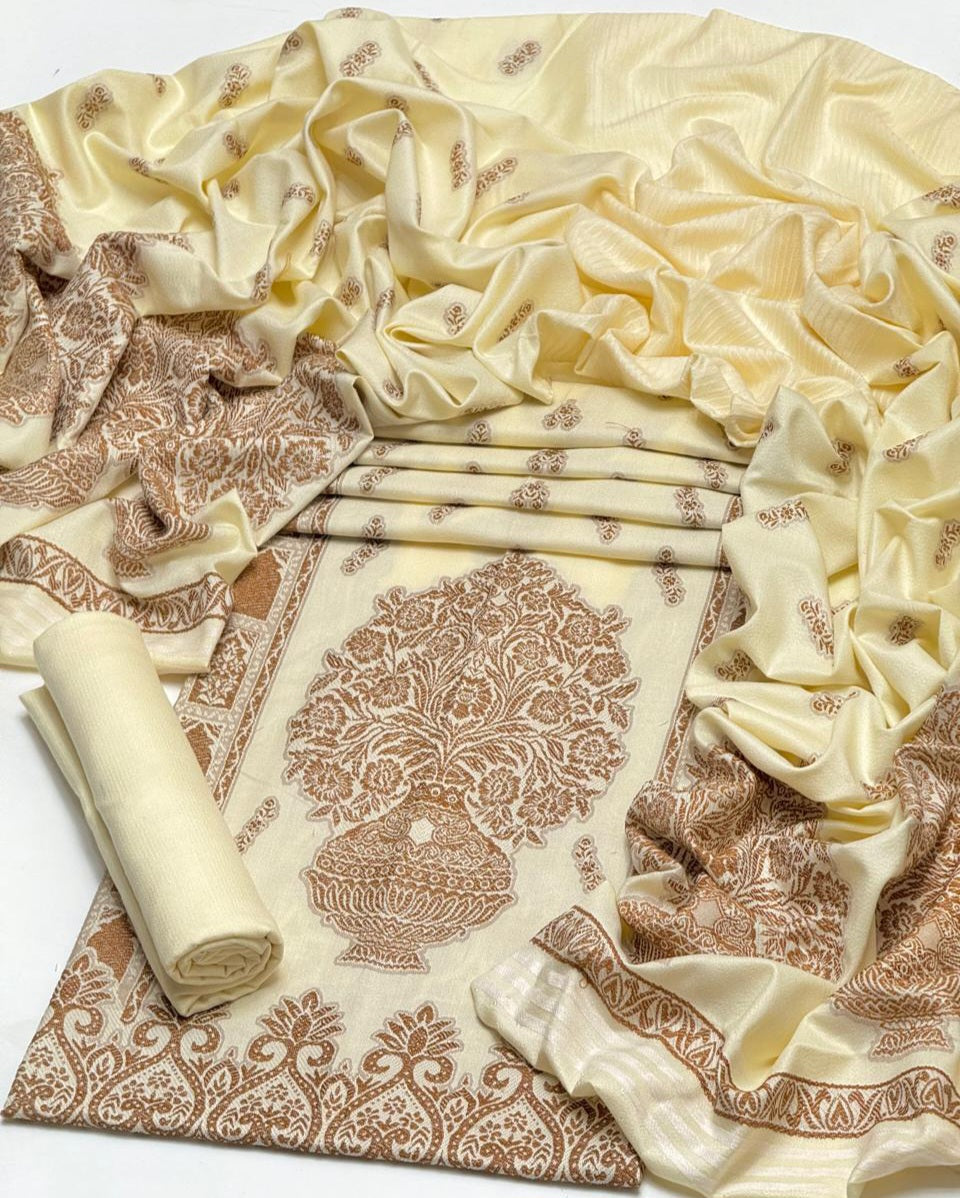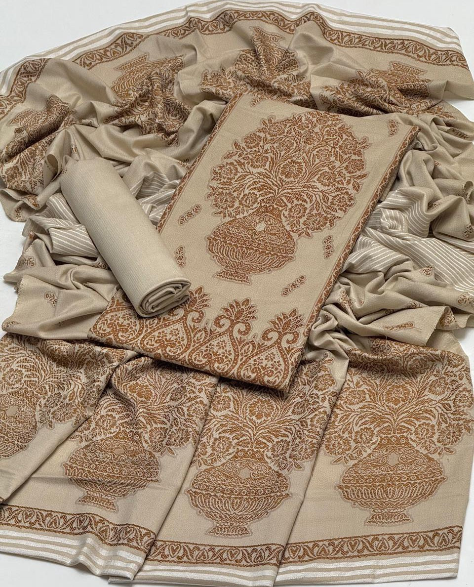 New Winter Collection Dhanak Marina Jaycard Work Shirt With Separate Sleeves.....Jaycard Work Dupatta Plain Dhanak Trouser3Pcs Dress