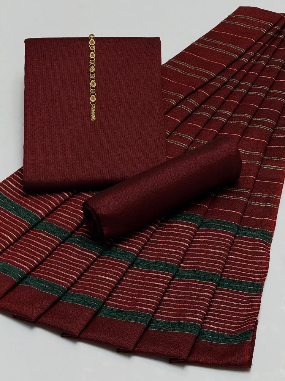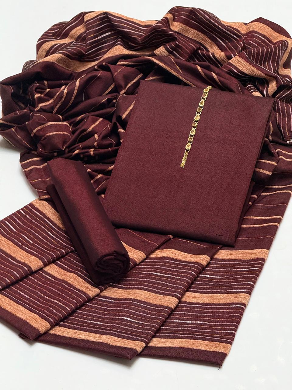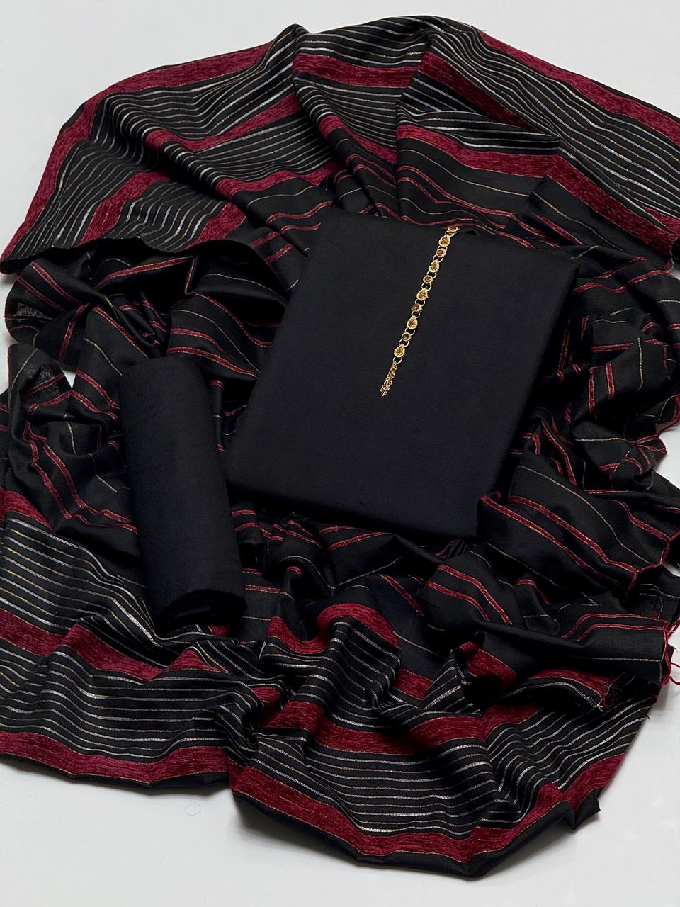 🔥WINTER’s COLLECTION🔥Beautiful & Elegant Style Pkain Khaddar Marina Shirt & Plain Trouser With Velvet Border Sequence Work Shawl 3 PC Dress 👗Â