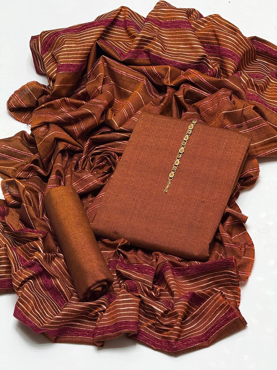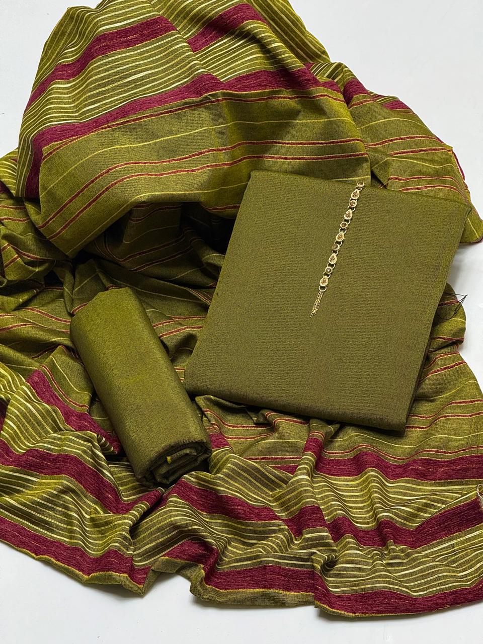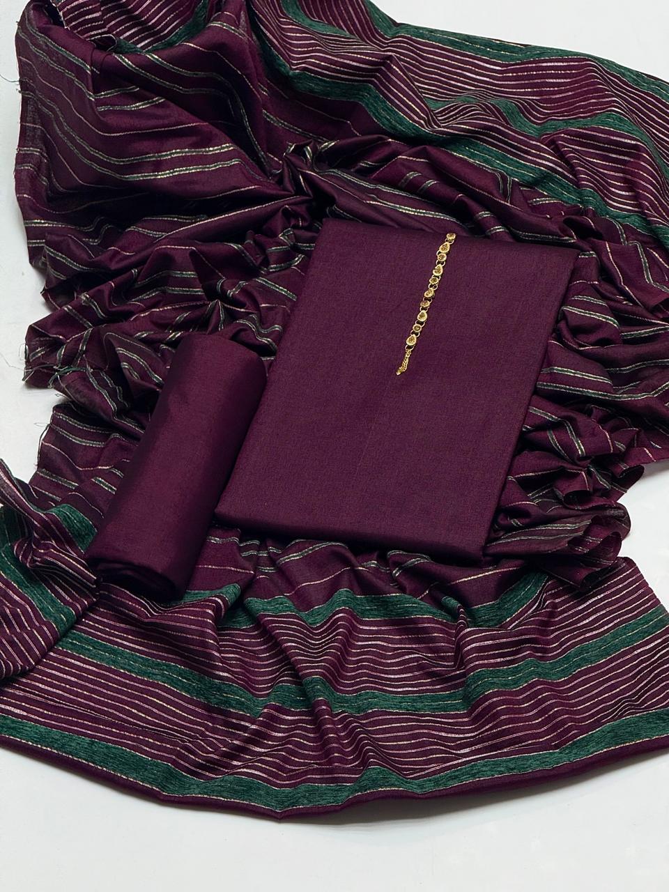 🔥WINTER’s COLLECTION🔥Beautiful & Elegant Style Pkain Khaddar Marina Shirt & Plain Trouser With Velvet Border Sequence Work Shawl 3 PC Dress 👗Â