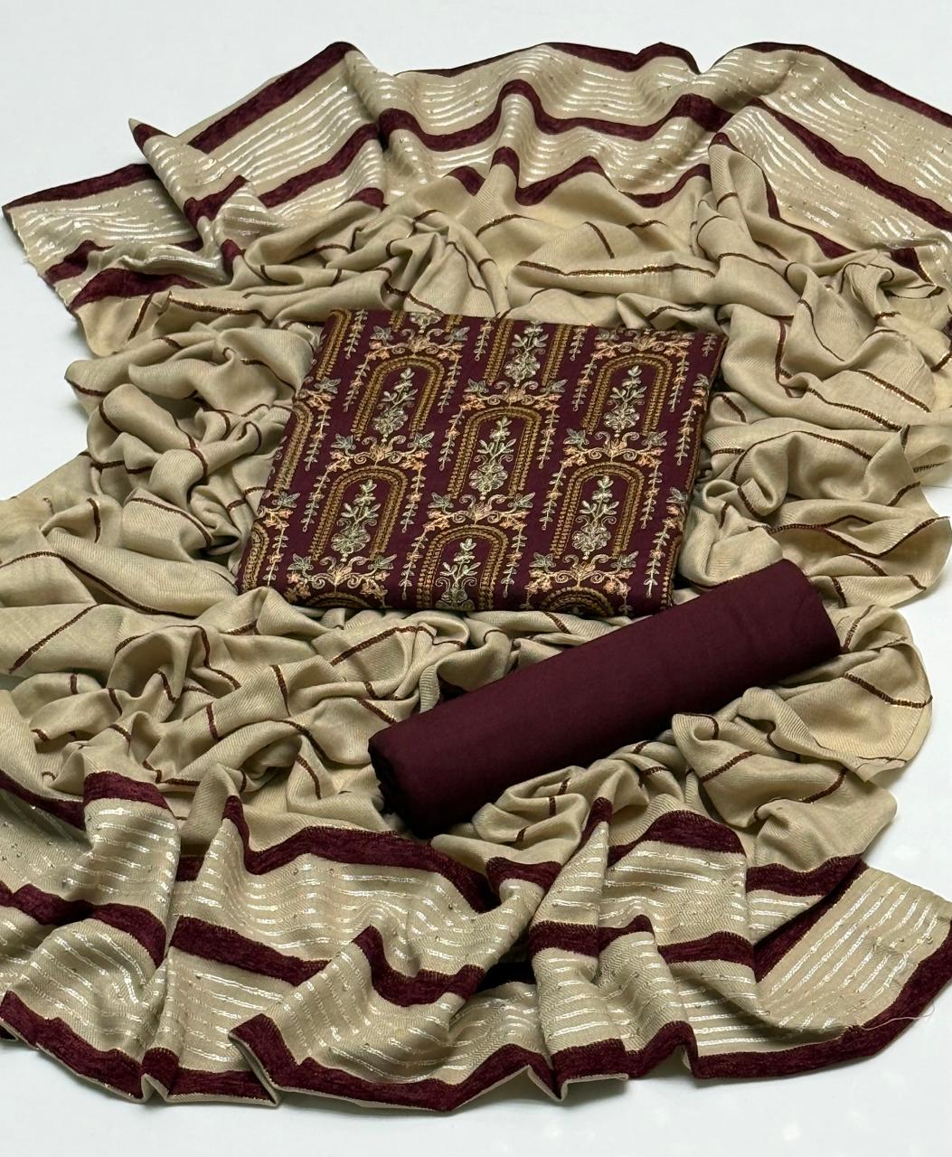 Along With Self Marina Velvet Border Lining Shawl 3Pcs Dress π.Β