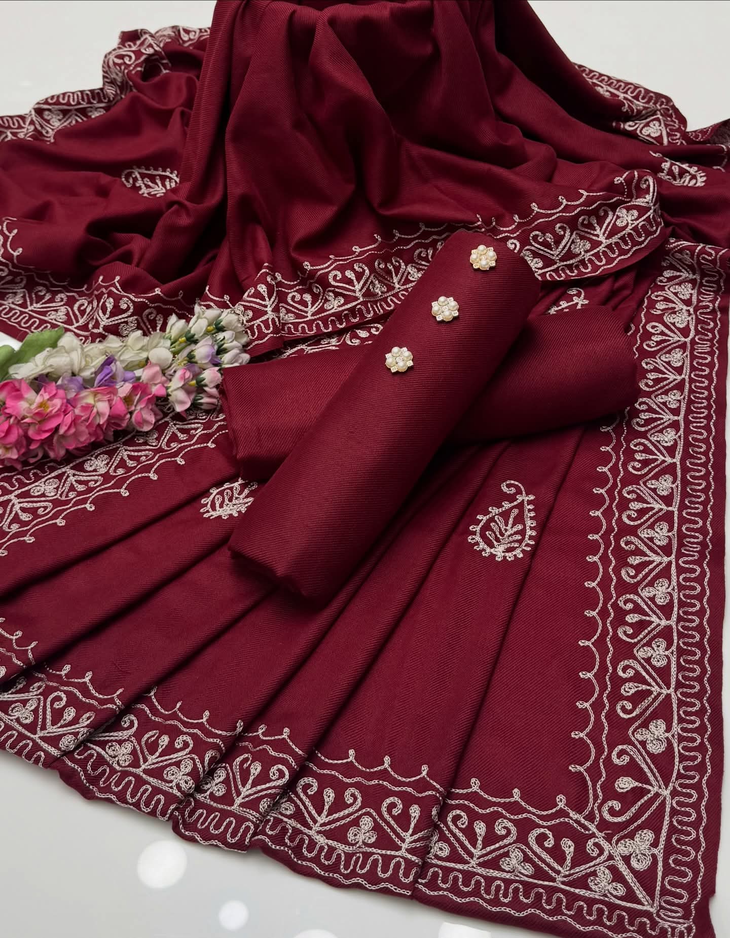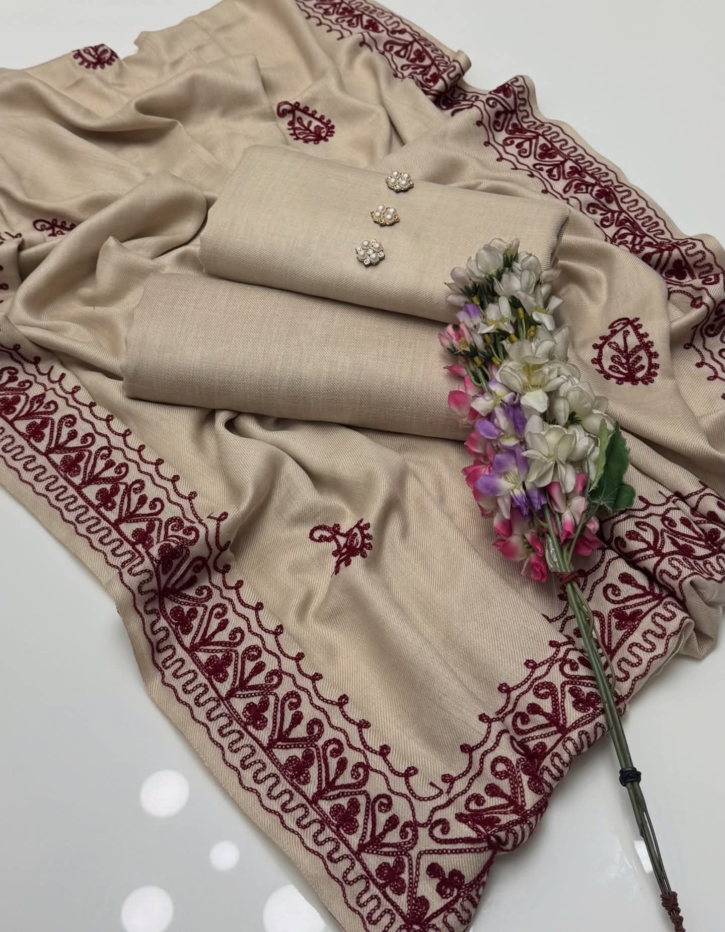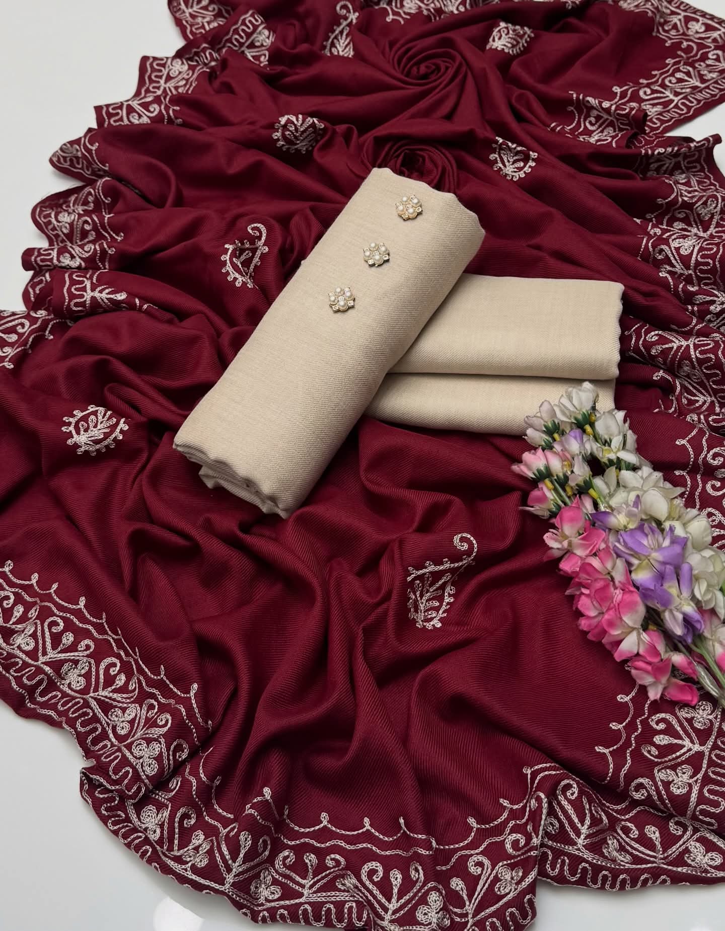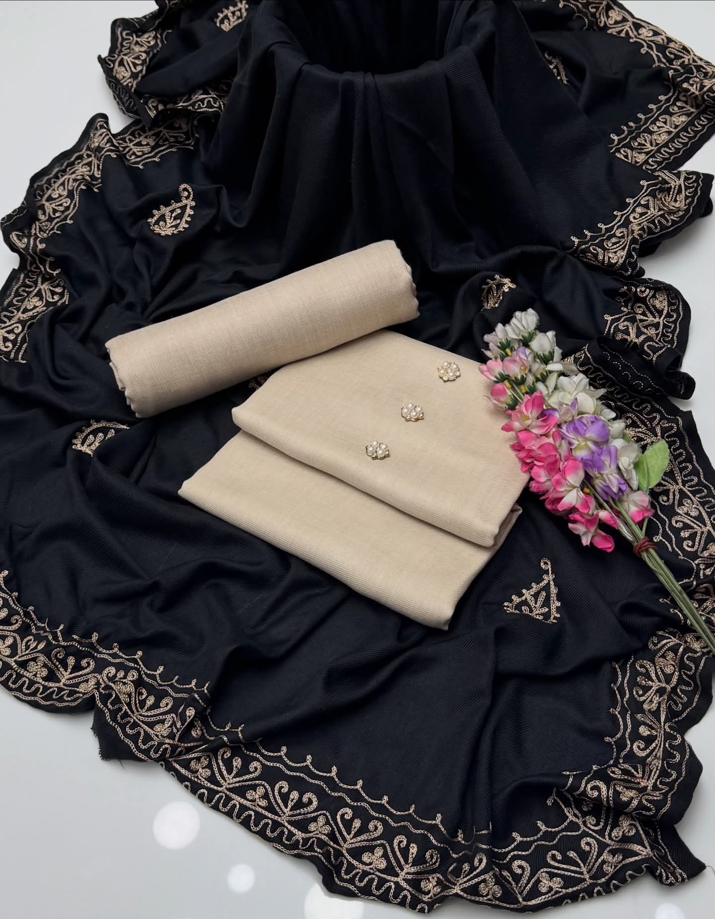Elevate your winter wardrobe with this luxurious 3-piece ensemble crafted from premium pashmina wool. The set features a beautifully embroidered shirt and matching trousers in soft, breathable fabric, paired with an exquisite 72-grade pashmina shawl. Each piece showcases meticulous craftsmanship and superior quality, delivering warmth without bulk. Perfect for formal gatherings or everyday elegance, this collection combines traditional artistry with contemporary comfort. The rich texture and refined drape make it an investment piece that transcends seasons.