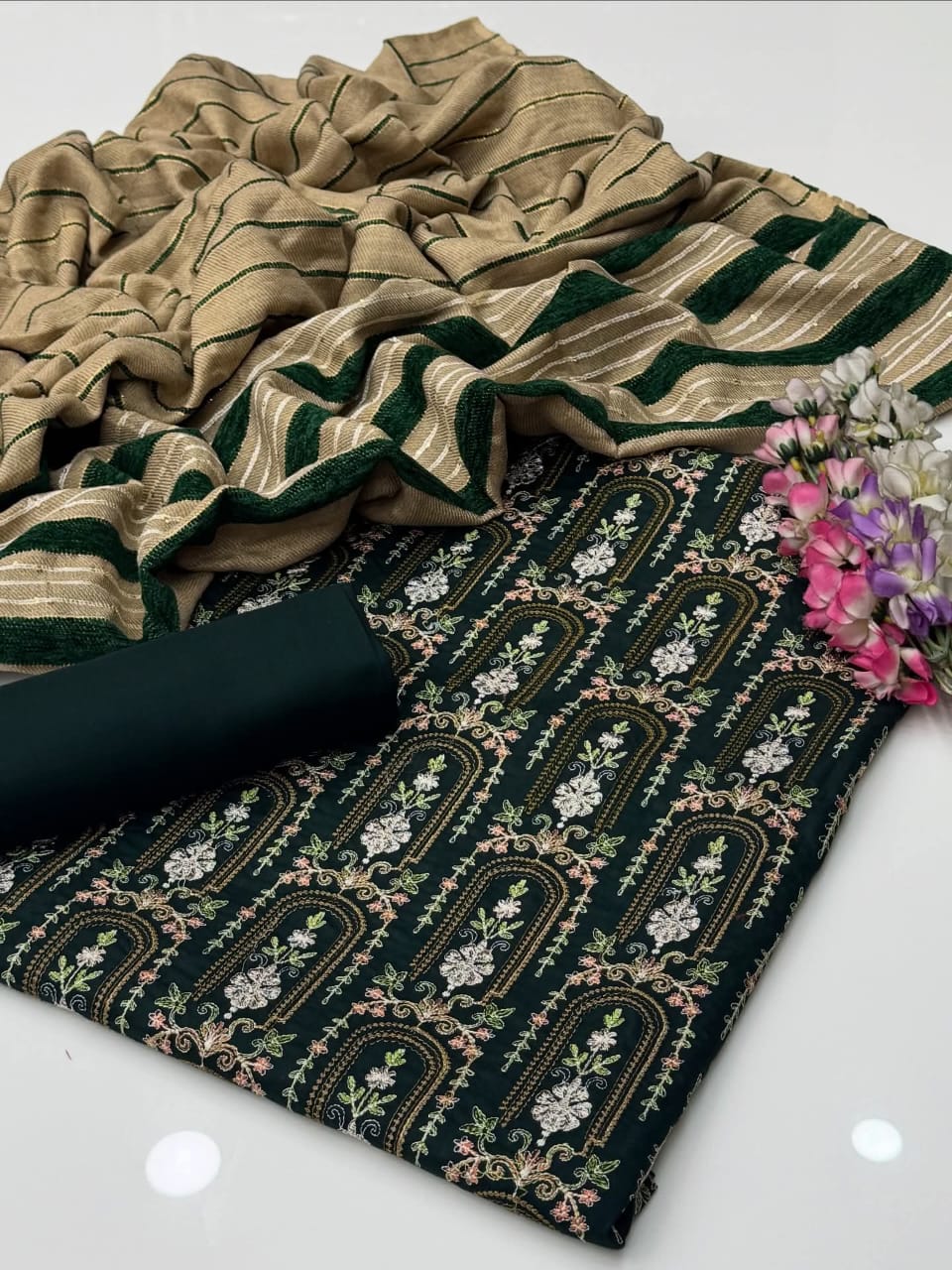 🧣 Shawl: Acrylic wool velvet border shawl that adds both warmth and luxury.