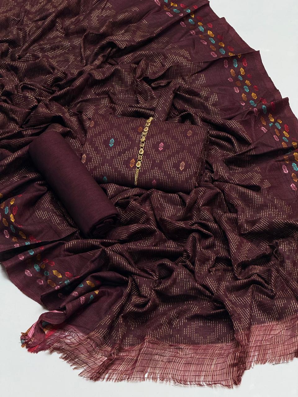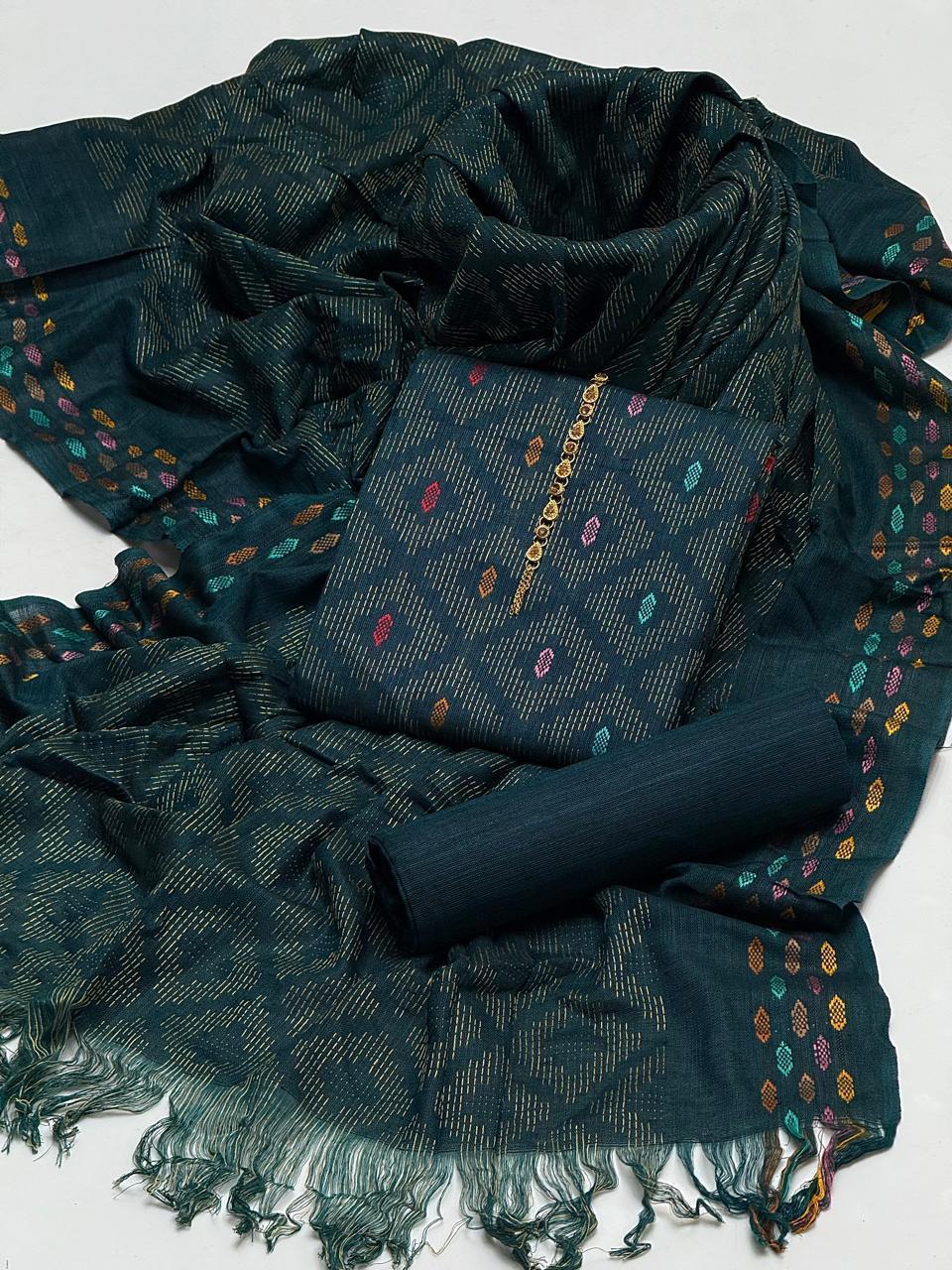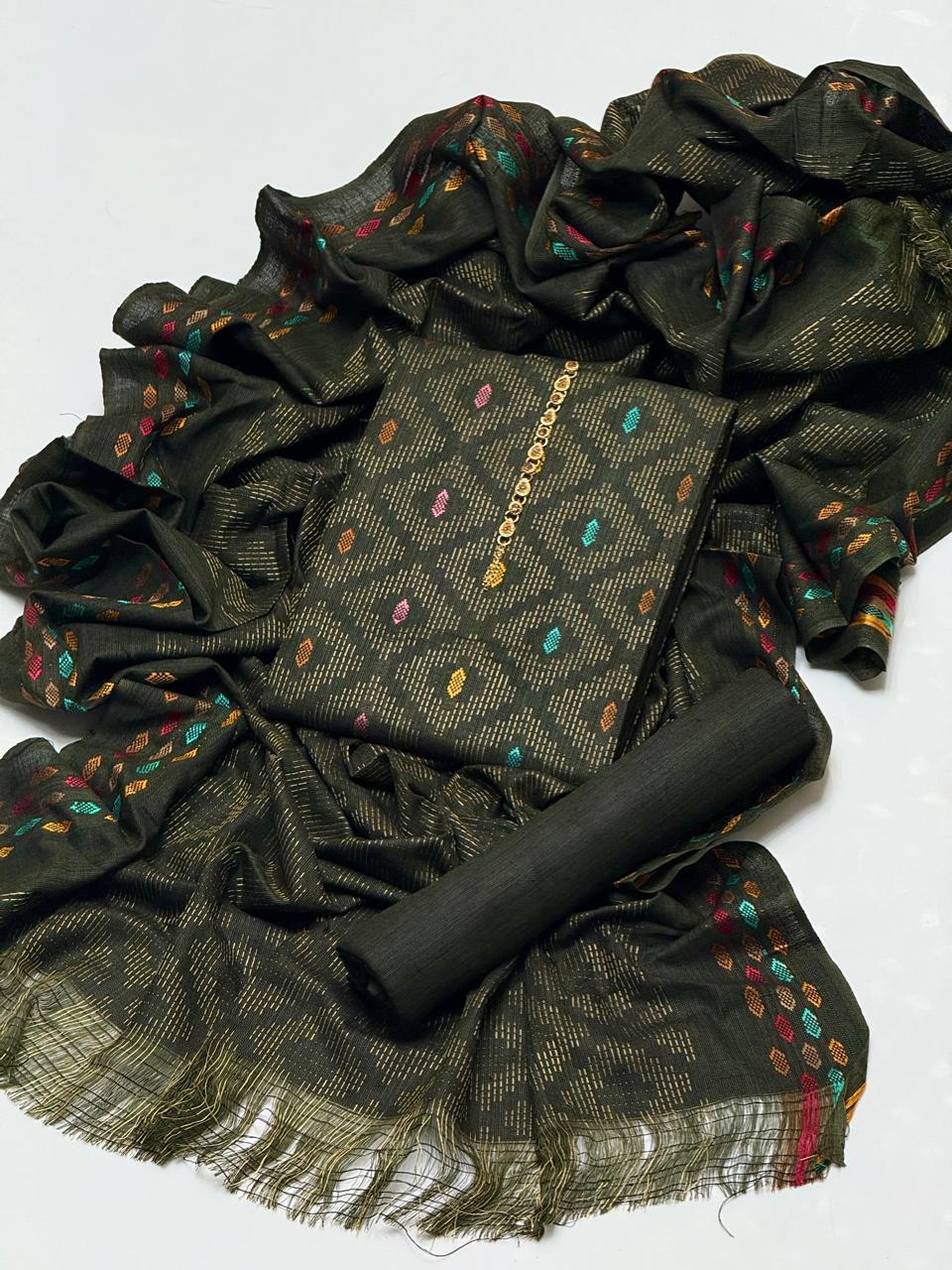 ◦ Embrace The Elegance of Winter Multani Khaadi Khaddar Jacquard Work Shirt, Jacquard IPlain Trouser & Paired with a luxurious Jacquard Stvle Border Khaadi Khaddar Multi Shawl 3 Pc Dress 👗